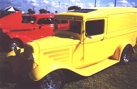 Banana colored 1932 Ford panel makes a great street machine. Plenty of room for Coors or Chicks in the back.