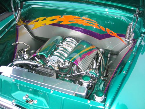 Beautifully detailed engine compartment with some wild paint graphics.