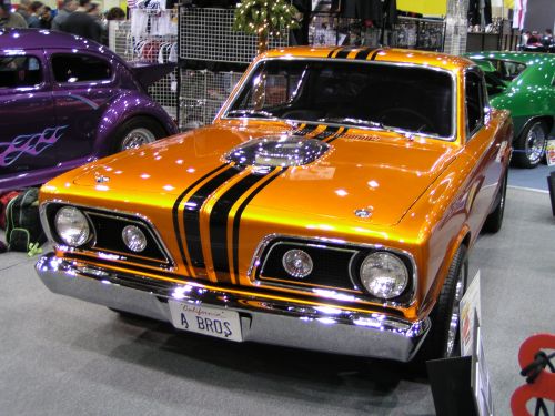 Sixties Barracuda coupe with racing stripes.