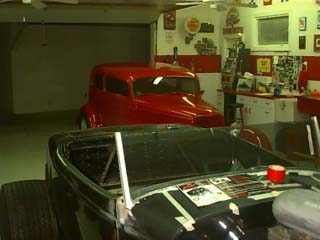 You go to a guy's house expecting to see a garage like the one you have at home and this is what you see. Everything so neat and tidy it makes you want to puke. So this is what mom was talking about when she said to clean up my room. Wally Osinga has got it under control in more ways than one. While he's working on a killer roadster, he has a 33 vicky done right for cruisin'. The little red number in the background is one dynamite cruisin rod! So many neat little things that this is going to take a while to describe. First let's look around the garage.